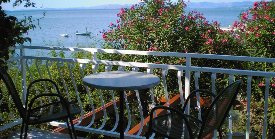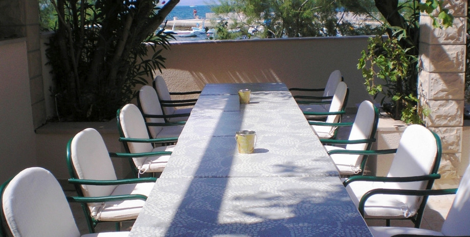 Na moru terasa je ispred blagovaonica u sjeni pergolom i oleandera, a broj ležaljke oko bazena. U dvorištu je još jedna natkrivena terasa i veliki roštilj.